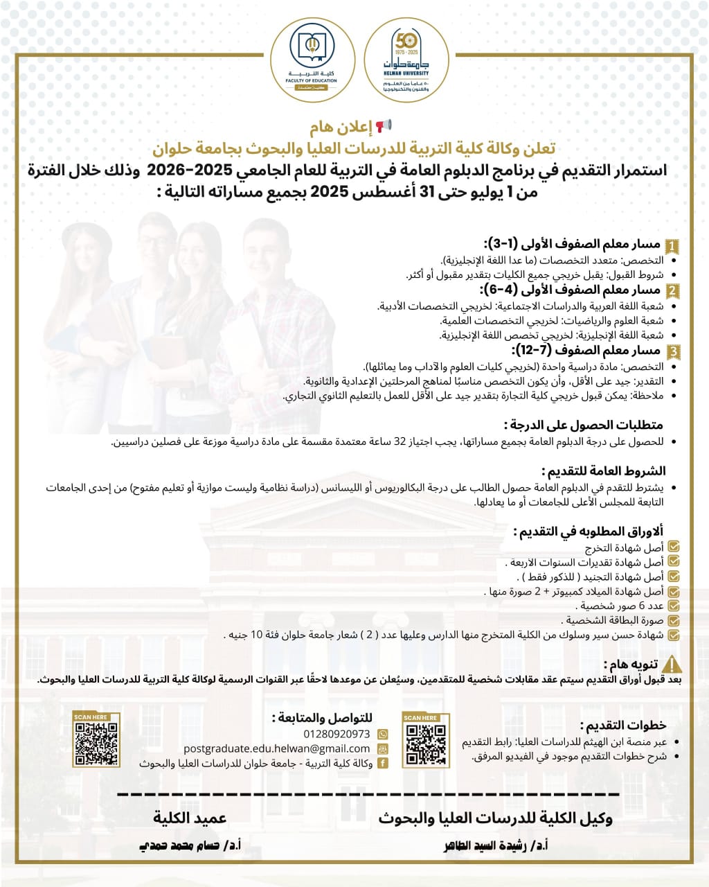 هل تبحث عن برنامج دراسي مرن يتناسب مع تخصصك الجامعي؟ الدبلوم العام في التربية بكلية التربية - جامعة حلوان هو بوابتك لاكتساب الأدوات العلمية والعملية لتصبح معلما مؤثرا، حيث صمم خصيصا لاستيعاب خريجي جميع الكليات.