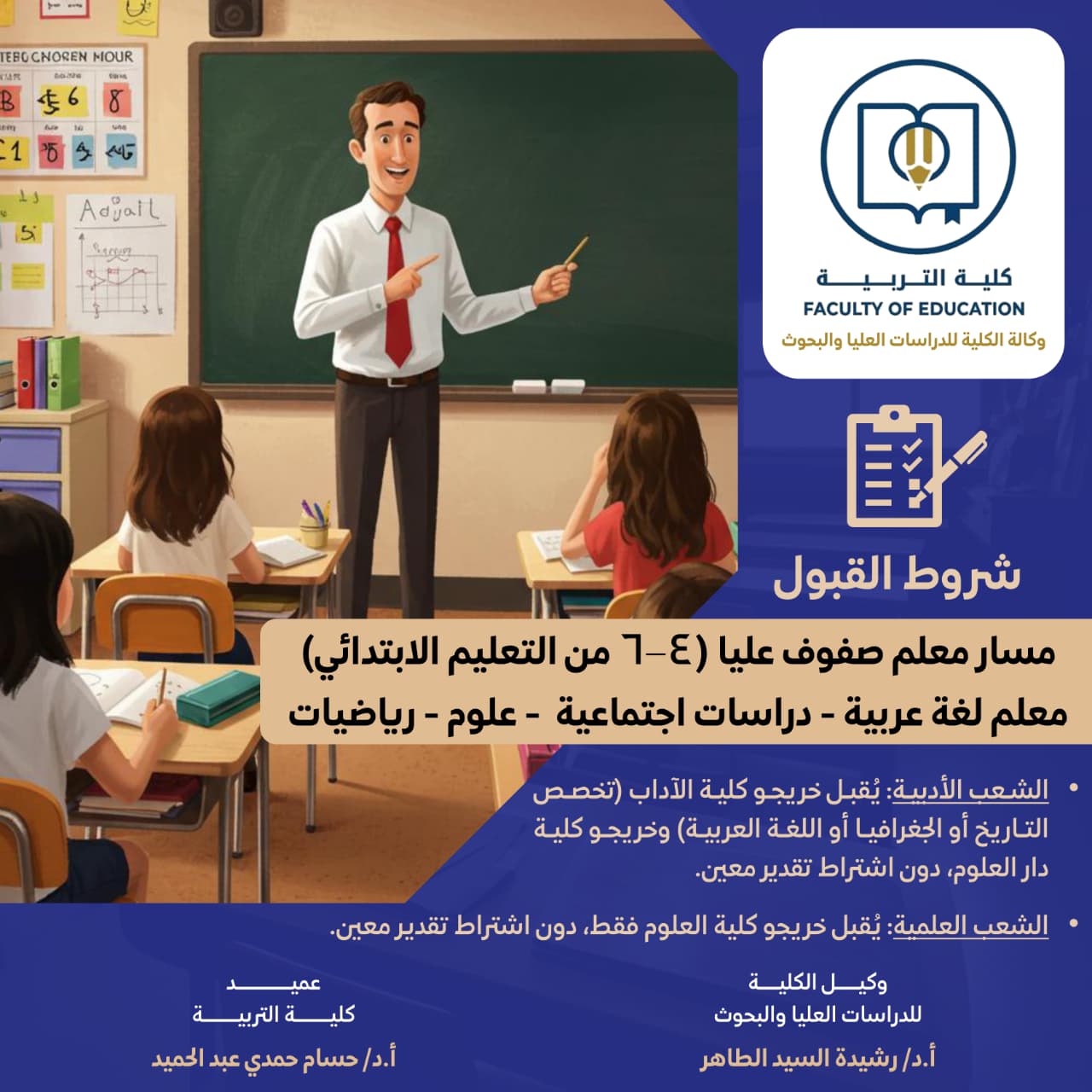 · شعبة اللغة العربية والدراسات الاجتماعية: مخصصة لخريجي الكليات والتخصصات الأدبية.